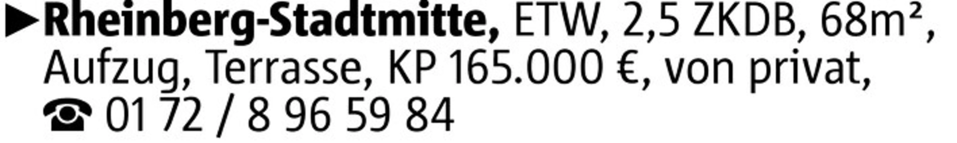 Rheinberg-Stadtmitte, ETW, 2,5 ZKDB, 68m², Aufzug, Terrasse, KP 165.000 €, von privat, 01 72 / 8 96 59 84